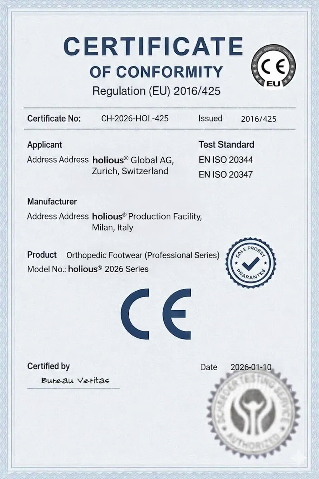 A holious® cipők gyártása és tesztelése az európai szabványok szerint történik a biztonság, tartósság és megbízhatóság érdekében: